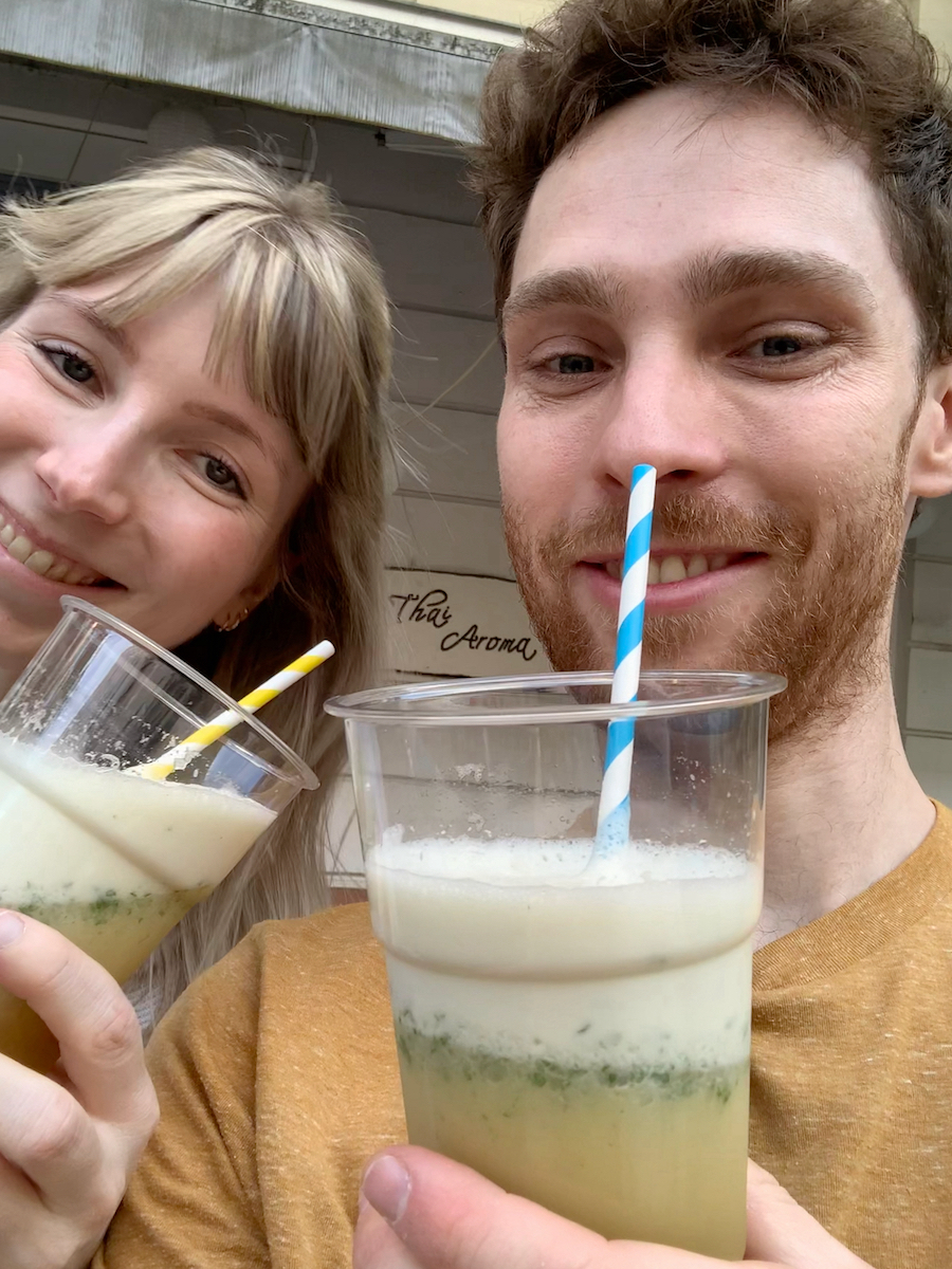 Een gratis ananasdrankje van onze oude buurtthai :)